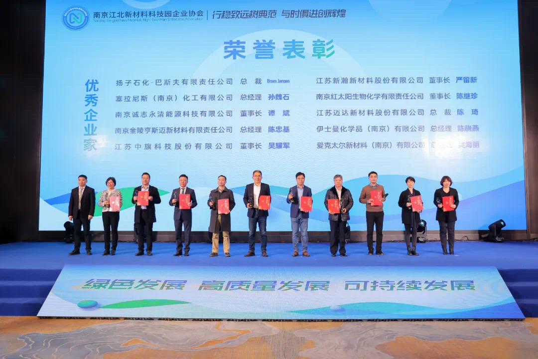 2024年1月25日,南京江北新材料科技園企業協會召開“打造領軍企業,推動高質量發展”大會。來自國家、省、市行業協會、高校院所、新材料科技園企業協會成員單位約200名代表參加會議。國家石油和化學工業聯合會副會長傅向升,江北新區黨工委委員、管委會副主任陶磊出席會議并致辭。公司董事長吳耀軍以“與時俱進二次創業,扎根江北再創輝煌”為主題做精彩發言。